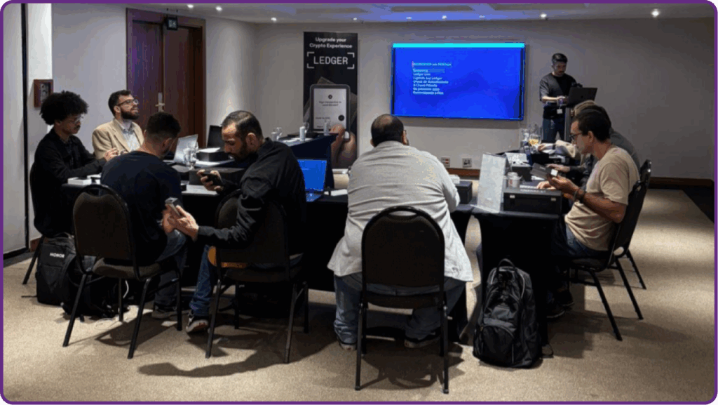 Exclusive workshop with top crypto and tech journalists. Participants attended theoretical and practical sessions on blockchain, crypto assets, security, and device usage. Everyone participated in hands-on activities, including transferring assets between devices. They also had the opportunity to ask questions and speak with a brand spokesperson.