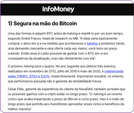 Expand NovaDAX’s visibility across the country inside and beyond media specialized in the crypto market.