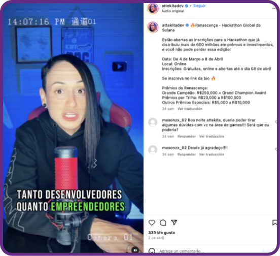Esenca coordinated influencer partnerships (@Attekitadev, @devsteph, @códigofonte, @Michela Galvão) and executed targeted media outreach to increase awareness of the Hackathon. Efforts included tailored press releases and proactive relationship-building with Tier 1 media outlets.