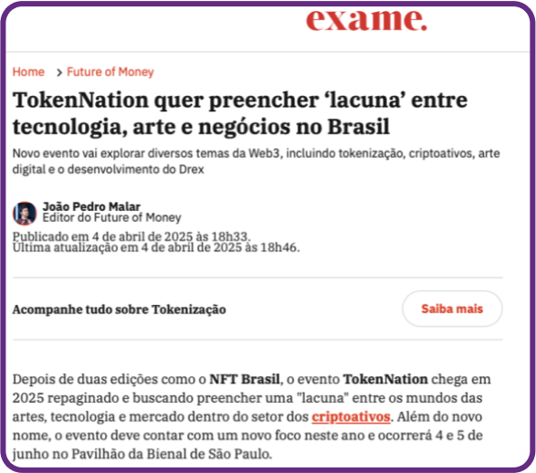 Launch the rebranded from NFT Brasil to TokenNation, as one of Brazil’s leading hubs for innovation, technology, and Web3, with strong national legitimacy and visibility, going beyond the crypto niche.
